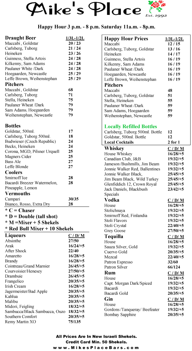 Happy Hour every day from 15:00-20:00 and all day Saturday