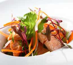 למתכון המלא - ראש השנה: פילה סלמון במעטפת דפי אורז ברוטב פסטיס לצד ביצי שליו עלומות