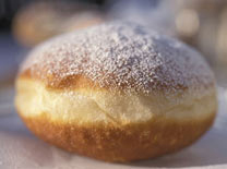 5. ממלאים בריבה לפי הטעם, כשהסופגנייה עודנה חמה, ובוזקים מעליה אבקת סוכר.