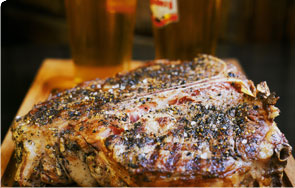 "אל השולחן הגיעו שני נתחי ענק מגרים: סינטה 400 גרם על העצם ביישון של 28 ימים, ואנטרקוט פריים 350 גרם...