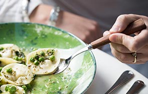 "טורטליני חצילים – מוכתרת ללא ספק כפסגת הארוחה: כיסונים מבצק רך מאוד על בסיס גבינת ריקוטה, ומילוי עז...