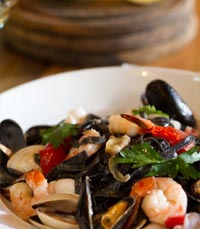 אז מה היה לנו? קודם כול, כמתאבן, לחם קירסאו, שהוא הלחם של רועי הצאן, בגלל שהוא יכול להישמר למשך זמן ארוך כשהם יוצאים אל ההרים. פרוסות של מאפה דקיק ופריך, ועליו זילוף של שמן זית ומלח גס. ברוסקטה סרדיניה, המורכבת משתי פרוסות נדיבות של ברוסקטה קלויה, ועליה קרם שום, פרוסות עגבנייה, קונפי פטרוזיליה, צלפים, אנשובי וביצה מבושלת למחצה, שמצטרפים יחד למנה מנה צבעונית ועזת טעמים. האנשובי מככב גם בפיצה מרינרה, שייחודה הוא בכך שהיא פיצה ללא גבינה, אך למרות זאת היא עסיסית, הודות לטופינג של רוטב עגבניות פיקנטי ועליו עגבניות טריות ופרוסות אנשובי. באגף הפסטות מככבת פסטה שחורה, שצבעה בא לה מדיונונים, המוגשת עם שרימפס, קלמרי, וונגולי ומולים ברוטב יין לבן וחמאה. שותפיי אוכלי השרצים חיסלו את הצלחת בהנאה.