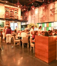 הגענו לאתניקה הממוקמת ברחוב שנקר, לב ליבו של אזור ההייטק בהרצליה פיתוח. אי אפשר שלא להבחין במחשבה הרבה שהושקעה בעיצוב המסעדה. יש ניצול נכון ויפה של הגובה והמרחב, נברשות מדליקות בכל מקום וחלוקה חכמה לכמה אזורים – ישיבה על הבר, לאונג' עם כורסאות, שולחנות משפחתיים ופינה של שולחנות קטנים לישיבה אינטימית. לצד הקווים המודרניים ניתן לראות מוטיבים אתניים שהובאו ישירות ממרוקו - מגשי נחושת וכסף גדולים התלויים לראווה על הקירות וקנקני פינג'אן הפזורים ברחבי המסעדה.