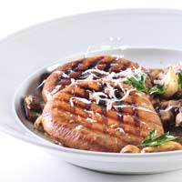 פורטבלו פרמז'אנו כולל פטריות פורטבלו ופטריות שמפניון צרובות בשמן זית, שום, מלח, פלפל, מחית כמהין, יין לבן וחמאה בעיטור גבינות פרמז'ן.